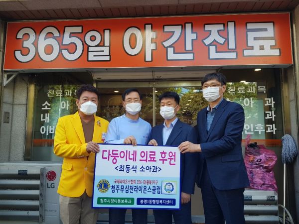 청주 무심천 라이온스클럽 회원 최동석 원장은 “무심천 라이온스클럽이 평소 생활이 어려운 아동들을 돕는 활동을 적극적으로 하고 있어, 회원으로서 자부심을 느끼고 의미 있는 봉사를 하고 싶었다”며“생활이 어려운 다둥이 가정의 사연을 듣고 무상으로 아이들을 지원하기로 했다”고 말했다.