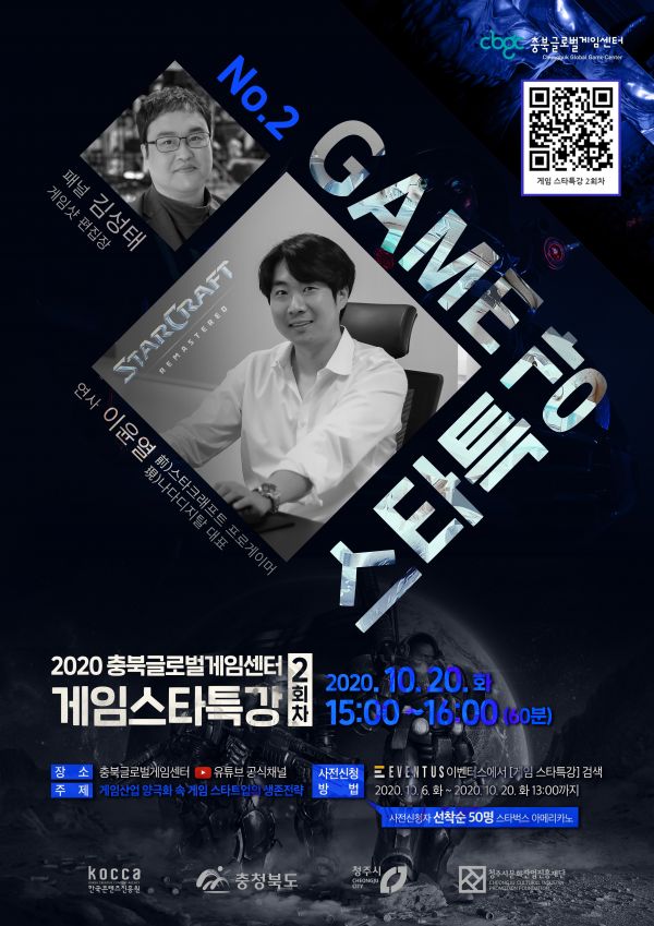 문화체육관광부, 한국콘텐츠진흥원, 충북도청, 청주시청이 지원하고 청주시문화산업진흥재단이 운영하는 충북글로벌게임센터가 오는 20일 오후 3시, 온라인으로 ‘게임 스타특강’을 개최한다.