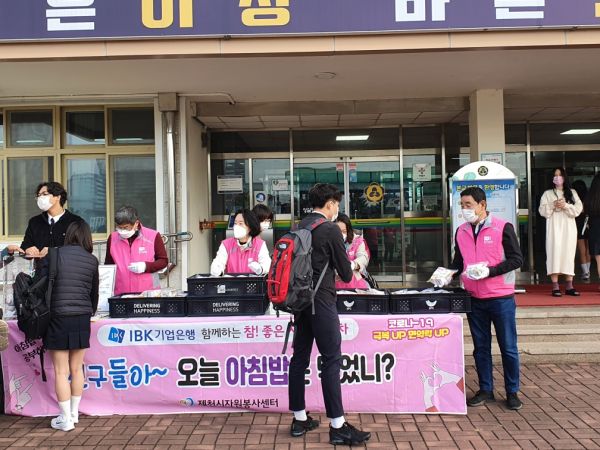 바쁜 등교 준비로 아침밥을 거르는 청소년들이 활기찬 하루를 보낼 수 있도록 응원하는 이 캠페인은 다섯 번째를 맞이했으며 이 날 행사에는 이상천 제천시장이 참석해 1365서포터즈 봉사단과 함께 이른 아침부터 준비한 도시락을 등교하는 학생들 한 명 한 명에게 나누어 줬다.