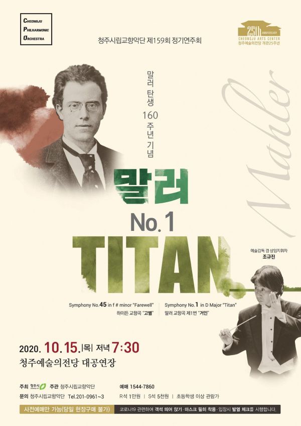 [충청뉴스큐] 청주시립교향악단이 제159회 정기연주회‘말러No.1 TITAN’의 공연을 오는 15일 저녁 7시 30분 청주예술의전당 대공연장에서 선보인다.