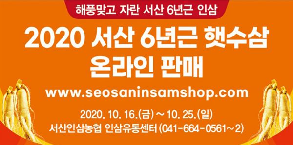 [충청뉴스큐] 서산인삼농협이 오는 16일부터 25일까지 10일간 서산 6년근 가을 햇수삼 온·오프라인 할인 판매행사를 개최한다.