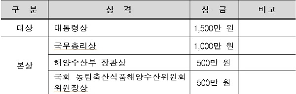 특별부문 수상자는 초·중·고·대학생 등 자녀가 자신의 부모님을 직접 추천하는 ‘우리 엄마, 아빠가 장보고다!’ 부문에서 1명을 선발하고, 국민의 안전을 지키는 군인·해경·공무원 중 각 기관·단체의 추천을 받아 1명을 선발할 계획이다.