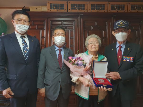 [충청뉴스큐] 청주시 보훈단체가 15일 6·25전쟁에 참전해 공을 세운 유공자 故이윤행 육군하사의 배우자인 차준여 여사의 오창읍 자택을 방문해 국방부장관을 대신해 무공훈장과 훈장증, 기념패를 전수했다.