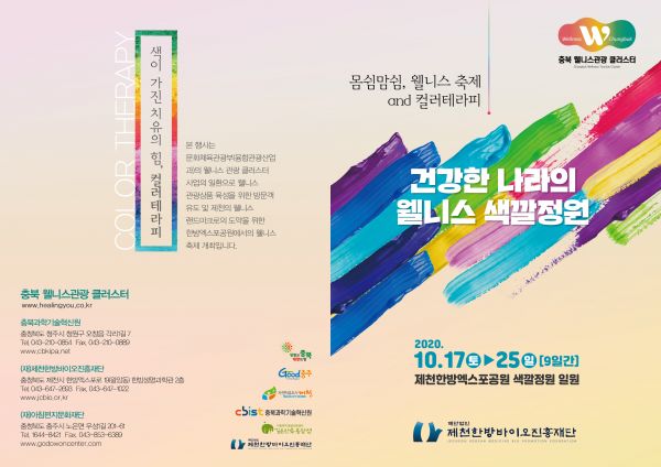 금번 웰니스 체험마당에는 색깔이 가진 고유의 파장과 에너지를 활용해 지친 몸과 마음을 치유할 수 있는 5색 컬러테라피 부스를 마련해 각각의 색깔이 가진 의미를 살린 전시를 통해 방문객들 모두가 코로나를 이기는 긍정의 에너지를 가져갈 수 있도록 할 계획이라고 전했다.