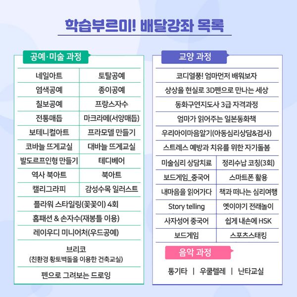 신청 가능한 강좌는 52개로 공예·미술 과정 교양과정 음악과정 등이 있다.