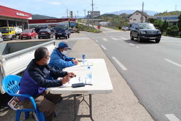 군은 지난 15일 오전 7시부터 다음날일 16일 오전 7시까지 24시간 동안 국가지원지방도 지방도 군도 등 29개 지점을 선정해 조사지점을 통행하는 모든 차량을 12개반 48명이 전수 조사했다.