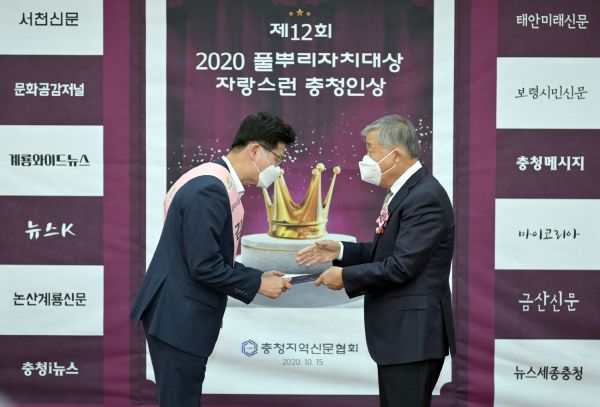 풀뿌리 지방자치대상은 충남지역신문협회가 매년 충남도와 15개 시·군 시장·군수와 지방의원 등을 대상으로 자치시대 지역발전과 지역민의 삶의 질 향상에 기여한 인물을 발굴해 시상하는 상이다.