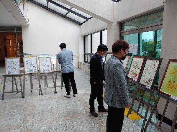 [충청뉴스큐] 충북 영동군은 충청북도 문해주간을 맞이해‘글한걸음, 소통두걸음, 희망세걸음’성인문해 시화전 충북지역 작품을 지난 13일부터 16일까지 영동군청 로비에 전시해 큰 호응을 얻었다.