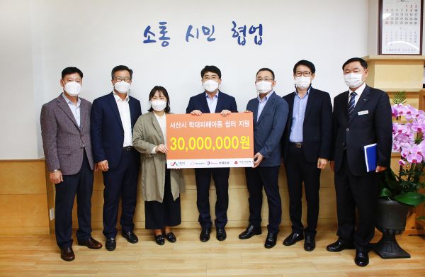[충청뉴스큐] 서산시와 한화토탈이 16일 시청에서 서산시 학대피해아동쉼터 운영 지원을 위한 지정기탁금 전달식을 가졌다.