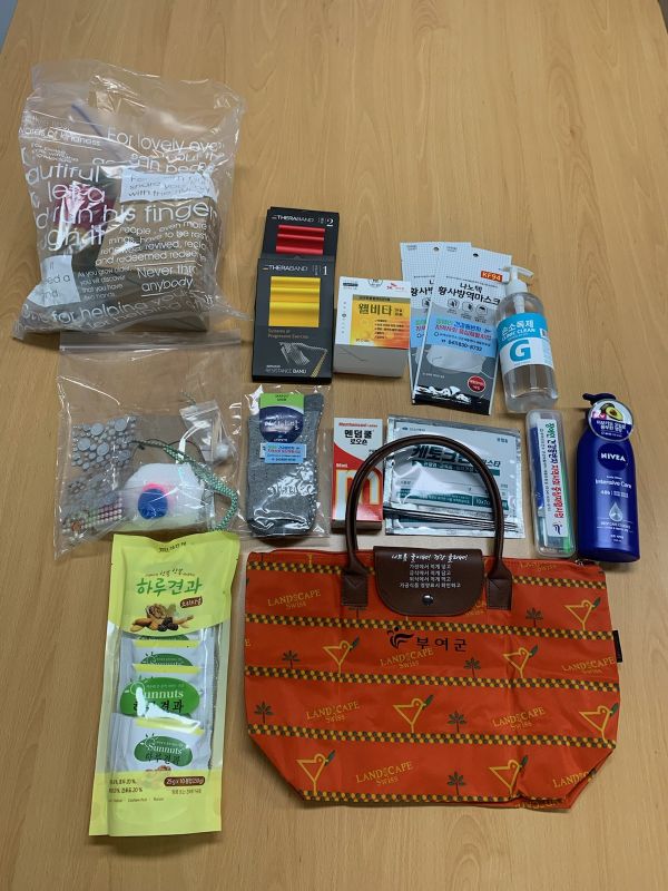 건강재활 꾸러미는 건강재활물품 과 감염병 예방물품 및 토탈 공예로 구성되어 있다.