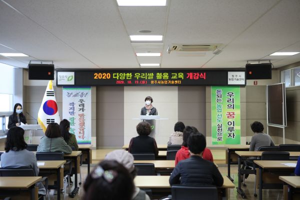 [충청뉴스큐] 청주시농업기술센터가 19일 청주시 농업인을 대상으로 실시하는 다양한 우리 쌀 활용 교육 개강식을 개최했다.