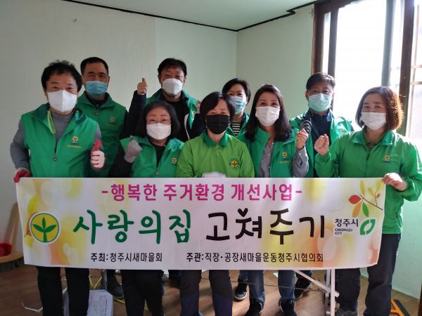 [충청뉴스큐] 직장공장새마을운동 청주시협의회가 19일 회원 50명과 함께 취약한 환경에서 생활하고 있는 차상위 및 노인 8가구를 찾아 ‘사랑의 집 고쳐주기’ 사업을 전개했다.