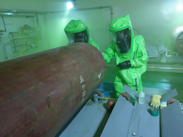 특히 훈련과정은 관리자가 개인보호 장비를 착용하고 현장에 투입돼 사고원인조사와 긴급차단조치 실시, 가스누출을 방지하고 염소중화시설을 가동과 소석회를 살포하는 등 실전을 가상한 훈련을 진행했다.