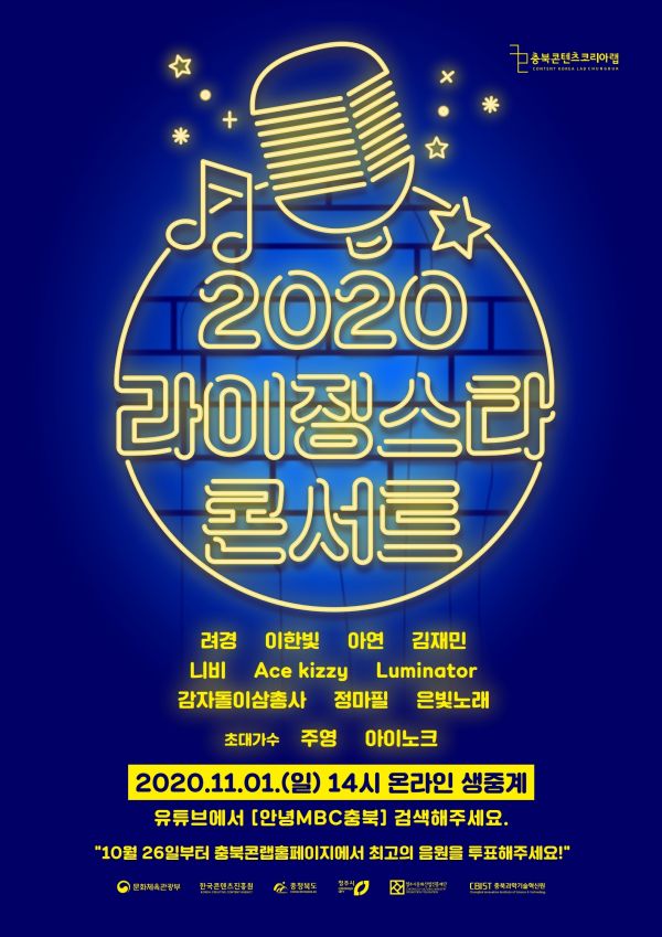 충청북도와 청주시가 주관하고 청주시문화산업진흥재단이 운영하는 충북콘텐츠코리아랩이 오는 11월 1일 오후 2시, 온라인으로 ‘라이징스타 콘서트’를 개최한다.