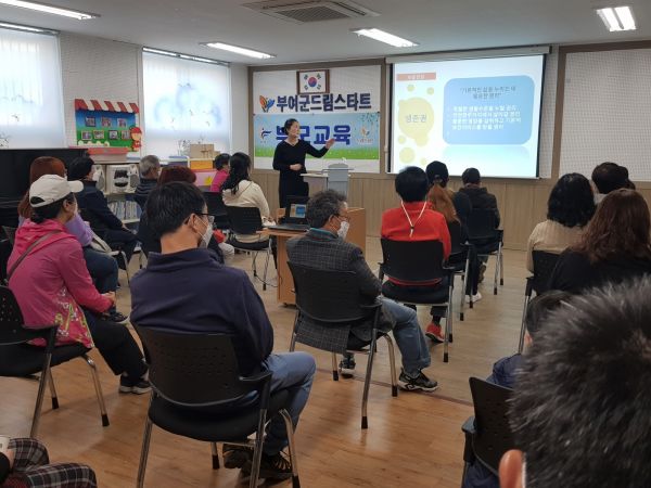 [충청뉴스큐] 부여군은 지난 24일 드림스타트 프로그램실에서 드림스타트 아동 양육자 30명을 대상으로 코로나19 예방을 위한 발열 체크와 마스크 착용 등 생활방역지침을 준수한 가운데 아동권리 부모교육을 실시했다.