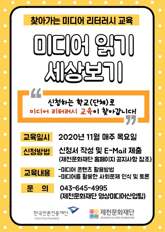 이번 교육은 한국언론진흥재단 미디어 교육 시설 및 단체지원 공모사업의 일환으로 제천문화재단에서 주관하는 사업이다.