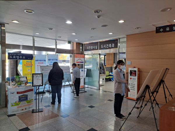[충청뉴스큐] 부여군이 부여군청 신관 로비에서 도로명 유래 사진전을 개최하고 있다.