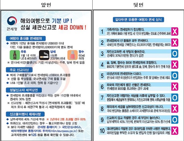특히 주요 쇼핑지역인 유럽, 미국발 비행기가 도착하는 시간대에 자진신고 여행자가 쏠리는 점을 감안하여 그 시간대에 세관 인력을 집중 배치하는 한편, 자진신고 여행자가 많아서 대기 시간이 발생할 경우에는'자진신고물품 내역 및 안내서'를 배포하여 신속히 통관되도록 지원하는 등 성실 신고하는 여행자를 위해서 최대한 편의를 제공할 계획이다.