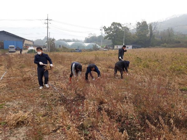 군에 따르면 지난 10월 26일 안내면 오덕리에서 자원봉사센터 자원봉사자 등 10여명이 600평의 들깨 탈곡 작업을 했고 28일에는 옥천군 자원봉사센터와 친환경농축산과 직원 20여명이 약 6,000평의 콩 수확 작업을 지원했다.
