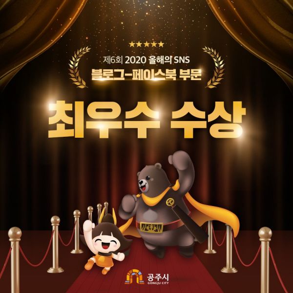 [충청뉴스큐] 공주시가 한국콘텐츠진흥협회에서 주최한 ‘제6회 2020 올해 SNS대상’에서 지난해에 이어 2년 연속 페이스북과 블로그 부문 최우수상을 수상했다.
