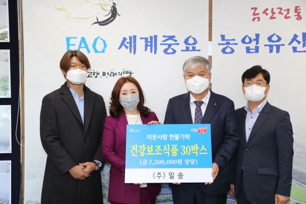 ㈜일송, 금산 어려운 이웃돕기 750만원 상당 건강보조식품 기탁