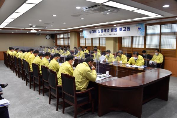 [충청뉴스큐] 부여군은 5일 군청 서동브리핑실에서 박정현 부여군수를 비롯한 전 부서장과 주무팀장이 참석한 가운데 부여형 뉴딜사업추진 보고회를 개최했다.