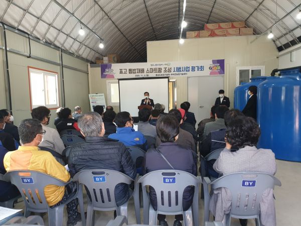 [충청뉴스큐] 부여군농업기술센터는 지난 2일 표고버섯 재배 농업인, 충남도농업기술원 관계자 등 50여명이 참석한 가운데 홍산면 최병국 농가 시범포장에서 표고 톱밥재배 스마트팜 조성 시범사업 평가회를 개최했다.