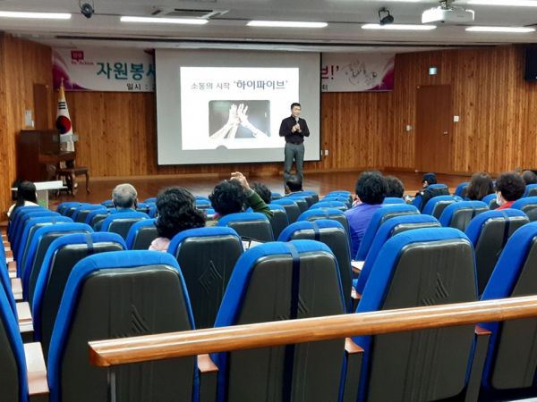 강의를 맡은 재미쌈해피연구소 김보성 대표는 ‘소통의 시작 하이파이브’라는 주제로 참가자들의 소통과 긍정 마인드를 이끌어내는 내용의 교육을 진행했다.