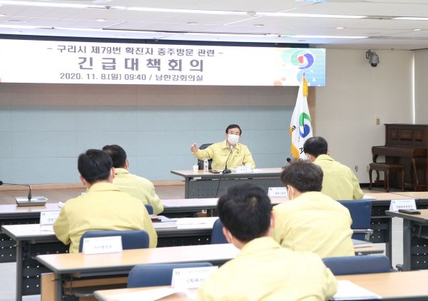 충주시는 8일 오전 조길형 시장 주재 하에 긴급대책회의를 개최하고 구리시 확진자의 충주 방문에 따른 접촉자 파악상황과 방역 대책을 점검했다.