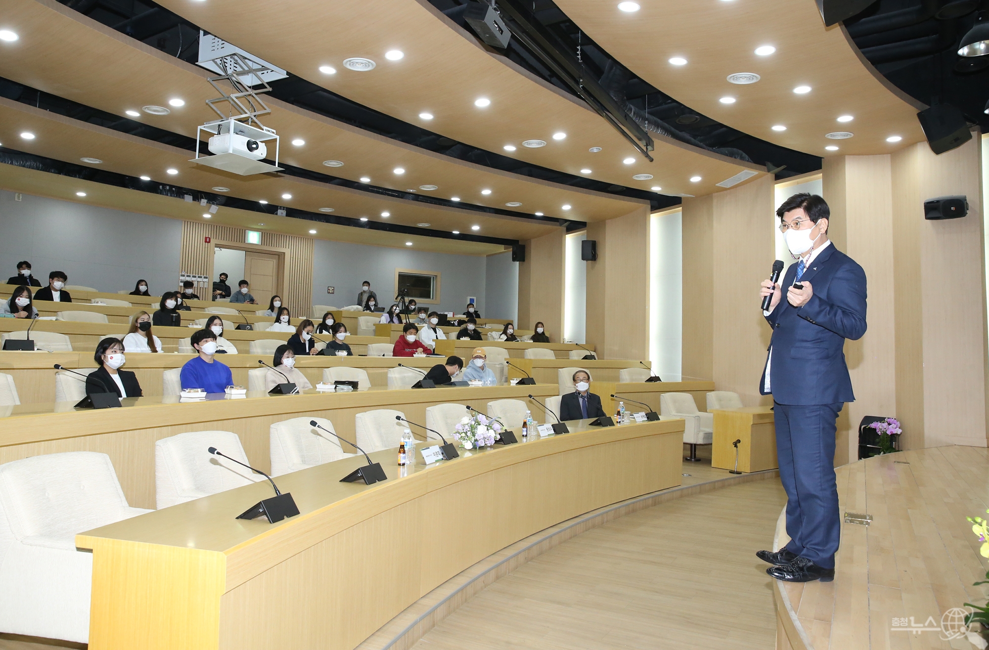 교양교육혁신본부은 코로나19 확산 방지를 위해 사회적 거리두기 1단계 지침에 따라 줌(Zoom)을 통해 온라인으로도 함께 진행하는 등 축하 연주, 초청 명사 소개, 특강, 질의 응답 시간의 순서로 진행됐다.