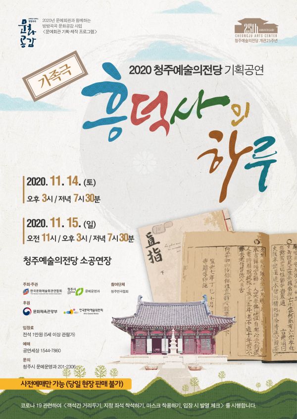 [충청뉴스큐] 청주시가 2020 방방곡곡 문화공감 사업 문예회관 기획 · 제작 프로그램 청주예술의전당 기획공연 가족극 ‘흥덕사의 하루’를 청주예술의전당 소공연장에서 선보인다.