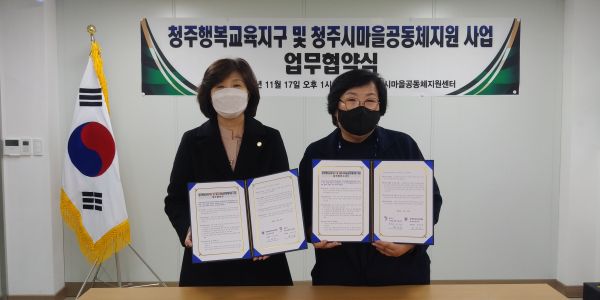이번 협약을 통해 양 기관은 마을교육 및 공동체 활성화를 위한 주민 교육과 역량강화 활동 마을공동체 및 교육공동체 관련 인적·물적 인프라 구축 지원 공동체 운영성과 공유 및 사례 발굴, 아동·청소년 및 청주시민의 권리증진과 지역사회 발전 등을 위해 협력할 계획이라고 전했다.