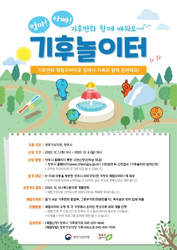 [충청뉴스큐] 청주시가 기후변화와 이상기상현상에 대한 과학정보를 쉽고 재미있게 알려주는 체험·공감프로그램인‘기후놀이터’를 운영한다.