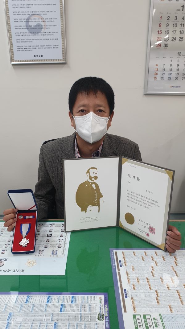 [충청뉴스큐] 청주시청 세정과 송진호 팀장이 대한적십자사로부터 2020년도 적십자 회원 유공장‘은장’을 수여받았다.