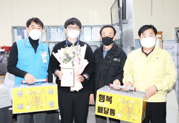 [충청뉴스큐] 충주시청공무원노동조합은 ‘칭찬하면 행복배달통이 간다’ 11월의 주인공으로 정보통신과 이호진 주무관을 선정해 칭찬배달통을 전달했다고 1일 밝혔다.