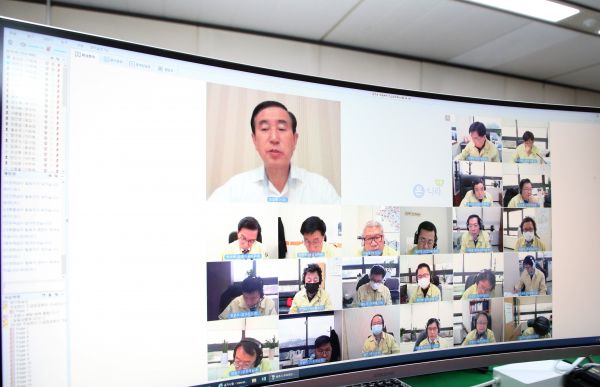 이날 재택근무 중인 조길형 충주시장은 영상으로 회의를 주재하며 직접 시정 현안을 점검하고 대책을 논의했다.