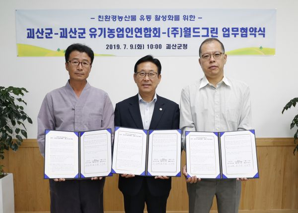 군은 친환경농산물 중에서 벼에 대해 지난 7월 농업회사법인 월드그린과 계약재배 협약을 맺었다.