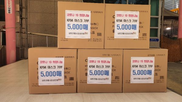 이번 마스크 기탁은 코로나로 인한 급격한 매출감소로 큰 어려움을 겪고 있음에도 불구하고 지역 위기를 함께 극복하고자 하는 시장 상인들의 뜻을 모아 이뤄졌다.