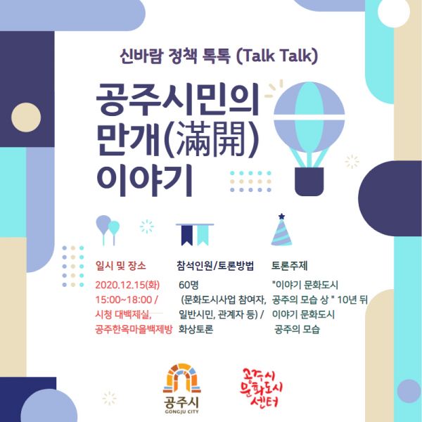 [충청뉴스큐] 공주시가 오는 15일 23번째 신바람 정책톡톡 ‘공주시민의 만개 이야기’ 화상 토론회를 개최한다.