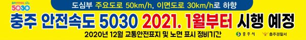 충주시와 충주경찰서는 보행자 교통사고 감소를 위해 도심부 차량 제한속도를 하향하는 ‘안전속도 5030’정책을 올해 12월까지 교통안전표지 및 노면표지 정비 완료 후 내년 1월부터 본격 시행할 예정이라고 14일 밝혔다.