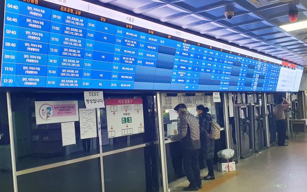 새로 설치된 버스시간 안내 LED 전광판은 강남 센트럴시티터미널에 설치된 전광판과 같은 모델로 기존보다 훨씬 크고 복잡한 권역별 버스 시간을 한눈에 볼 수 있는 장점이 있다.