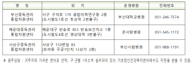 "중독관리통합지원센터"는 알코올 등 중독분야 정신건강전문요원을 배치하여 지역 내 중독자 조기발견·상담·치료·재활 지원, 중독 폐해예방 및 사회인식 개선을 통해 시민 정신건강 증진을 도모하기 위하여 부산대학병원 등 전문병원에 위탁 운영하고 있는 무료 이용시설이다.
