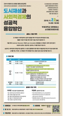 토론회는 오광석 한국해양대학교 교수가 좌장으로 하여 관련 전문가들과 도시재생과 사회적경제 전문가 육성방안에 대하여 진행될 예정이다.