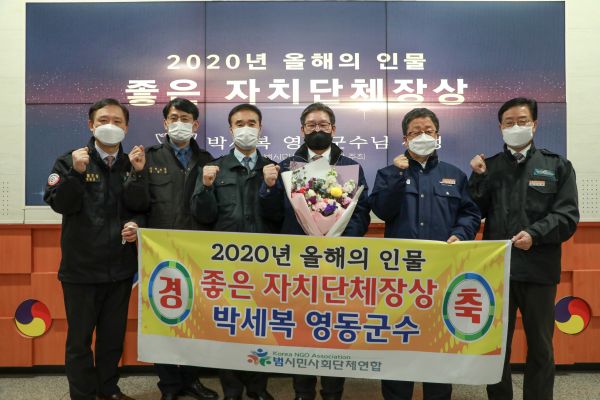 [충청뉴스큐] 박세복 영동군수가 주민 복지향상과 지역발전과 이끈 공로로 범시민사회단체연합 주관의 올해의 인물‘2020년 좋은 자치단체장’에 선정됐다.