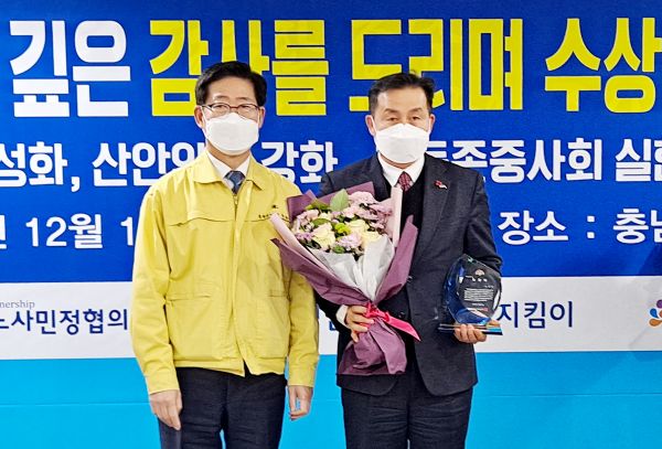 시는 지난 15일 충남도청 상황실에서 충청남도 노사민정위원회 주관 ‘노사민정 협력활성화 시상식’에 참석해 노사민정 협력활성화 단체부문 도지사 표창을 수상했다.