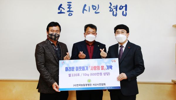 기탁식은 시장실에서 진행됐으며 맹정호 서산시장, 홍성규 한국농업인경영회 서산시연합회장 등 임원들이 참석했다.