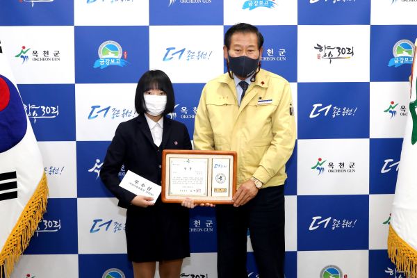 군은 아동·여성안전 지역연대 운영위원회 14명의 심사를 통해 독창성과 흥미도, 작품성, 젠더 감수성, 파급력 등 항목을 평가해 옥천여자중학교 1학년 김어진 학생의 작품이 우수상으로 선정하고 상장과 30만원의 옥천사랑상품권을 지급했다.