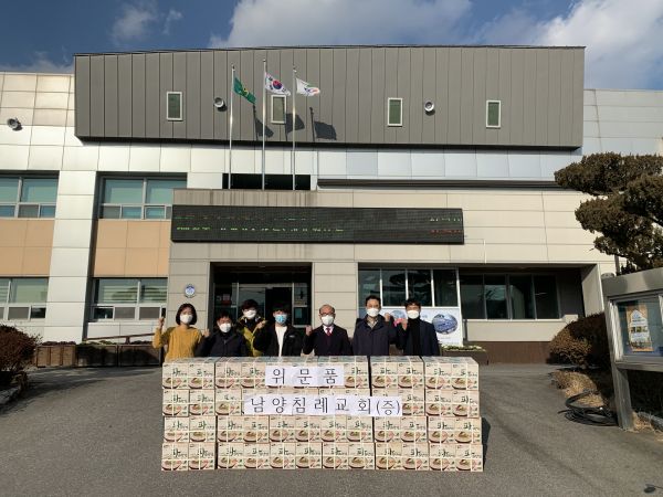 남양침례교회는 지난 22일 면내 소외계층을 위한 위문품을 남양면에 기탁했다.