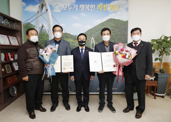 두 자문위원은 30일 군수집무실에서 이차영 괴산군수로부터 표창장을 전수받았다.