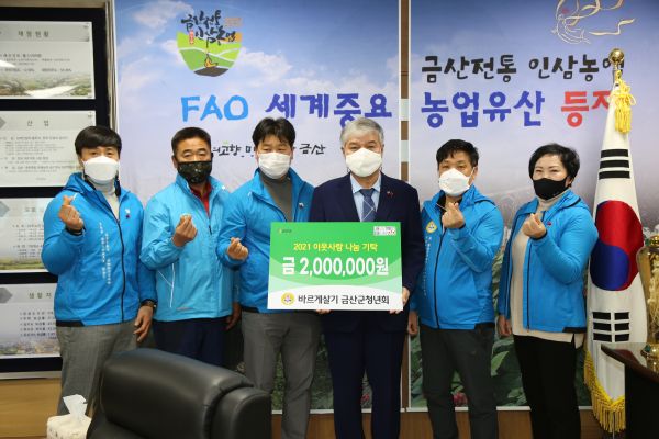 또한 바르게살기 금산군청년회 한상진 청년회장은 “금산의 청년으로 어려운시기를 함께 이겨내고자 기부를 결정했다”고 말했다.